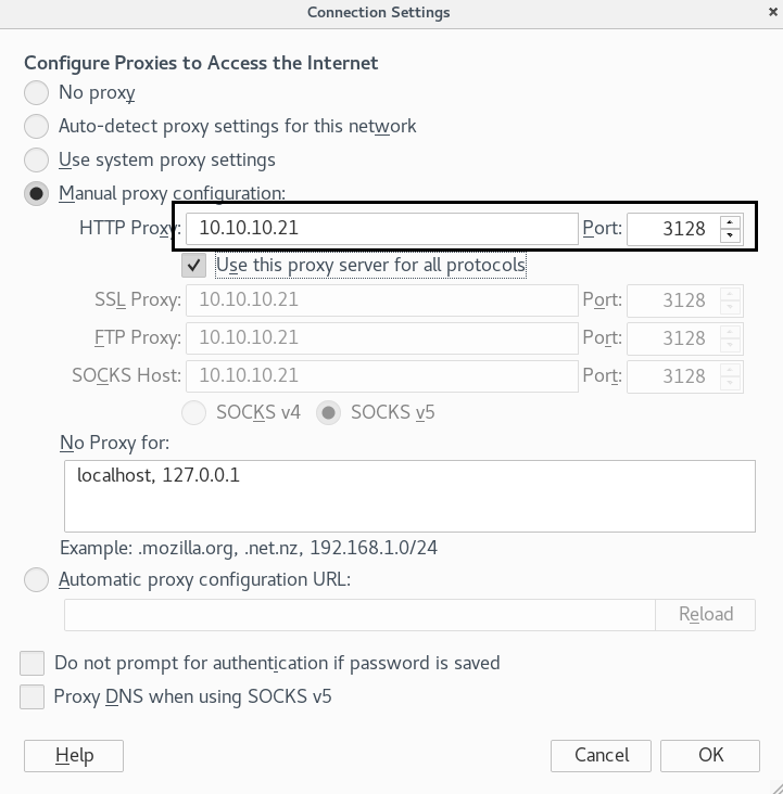 As we know the target machine is running as squid proxy, we configure our browser to redirect the traffic through the target machine.