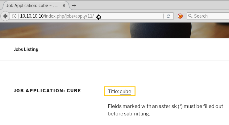 As you can see from the previous image, we have made an alight change in the URL. In which we have simply changed the end number by /10/ which opened a page stating Job application as you can see below.