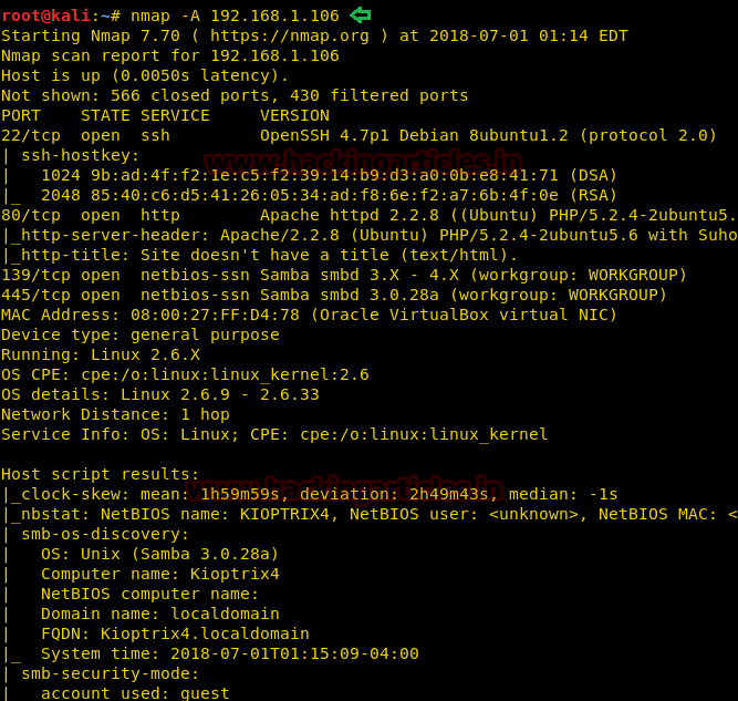 So we target at 192.168.1.106 let go for its enumeration and scan open ports and protocols. With help nmap aggressive scan we have observed several open port and service running on it.