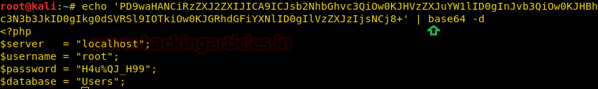 echo 'base 64 encoded text' | base64 -dThus we found the following information after decoding.